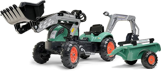 X-Trettraktor mit aufklappbarer Motorhaube und Anhänger - grün